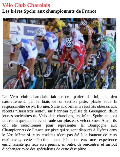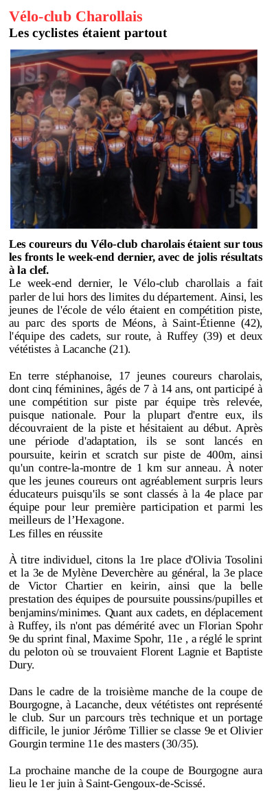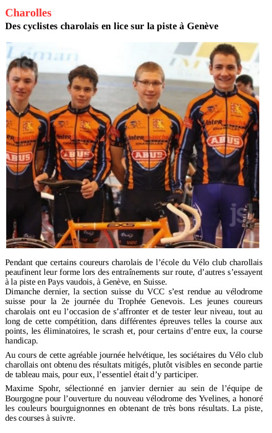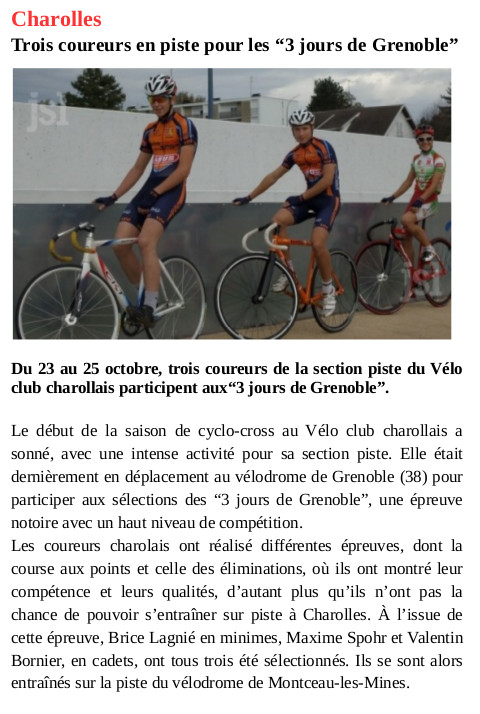 JSL : édition du 8 février 2014 : Des cyclistes charolais sur la piste à Genève