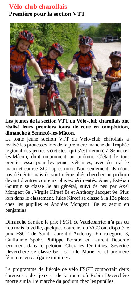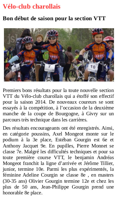 JSL : édition du 9 avril 2014 : Bon début de la section VTT