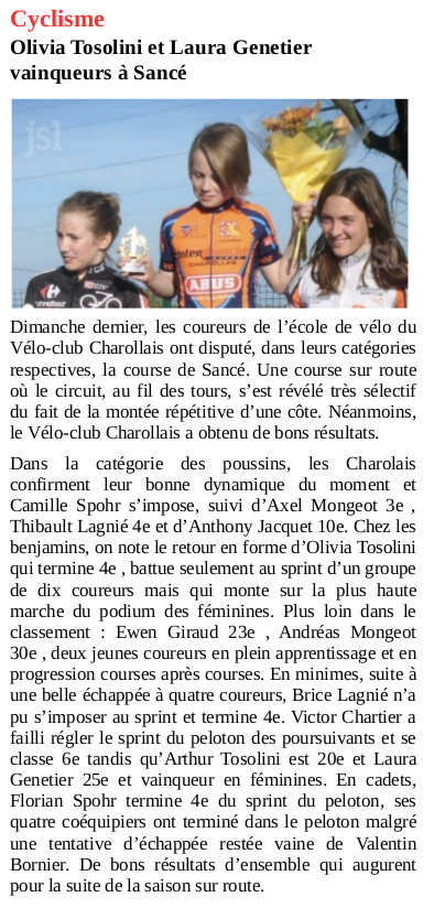 JSL : édition du 10 avril 2014 : Olivia et Laura vainqueurs à Sancé